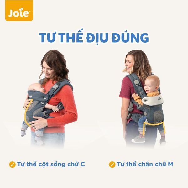 Hiểu rõ những lo lắng ấy, Joie đã dành nhiều năm nghiên cứu và cho ra đời dòng địu em bé được thiết kế theo tiêu chuẩn công thái học, hỗ trợ bé ngồi đúng tư thế chuẩn. Sản phẩm không chỉ mang lại sự thoải mái cho bé mà còn giảm gánh nặng cho ba mẹ khi chăm sóc con.