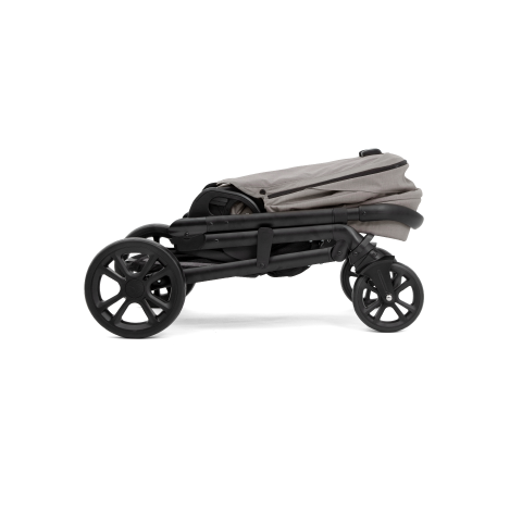 Khi tay đang bận, chỉ cần một thao tác bấm và giữ dây, xe tự thu gọn và tự đứng vững. Cơ chế khóa tự động giữ khung xe cố định, có thể kéo đi nhẹ nhàng như một chiếc vali.